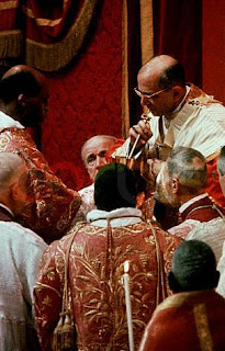The old coronation was right; and not only that, the rejection of that ceremony and the Triregnum is cowardice before the world and a false humility that makes of the modern Popes, men who are, putatively, humbler than Christ Himself who did not refuse a crowning from His enemies - for they did, in truth, crown Him as King (not knowing it though) whereas the modern cowards do not fear the Lord but, rather fear being mocked by the world if they continued to insist that they ARE all that the words of the old coronation proclaims.